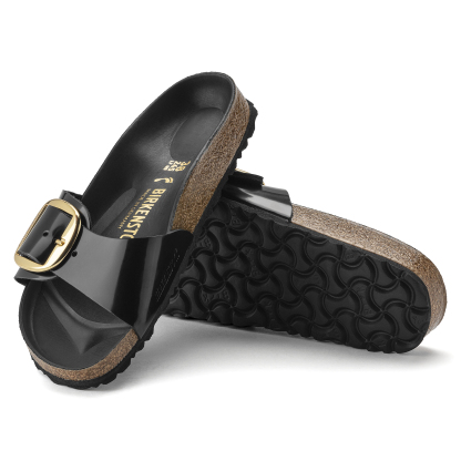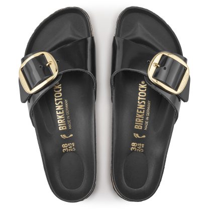 Le modèle Madrid, un des grands classiques BIRKENSTOCK, affiche un design épuré qui, dans l’univers de la mode, ne laisse personne indifférent. Le modèle se présente ici dans une version Big Buckle, ornée d’une grande et élégante boucle ardillon. Le lit de pied semi-exquisit est entièrement revêtu d’une semelle de propreté en cuir Piumato doux, qui garantit un confort sans pareil. La tige se compose d’un cuir naturel haut de gamme verni brillant.