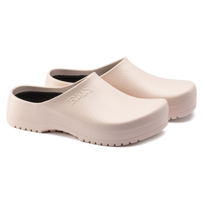 Le grand choix de couleurs de la Super Birki témoigne de ses nombreuses possibilités d’utilisation, dans un environnement professionnel ou privé. Sa forme compacte est composée de polyuréthane étanche et antitache, qui est également résistant à l’huile et aux graisses. Ce matériau extrêmement durable présente l’avantage d’être lavable jusqu’à 60 ° Celsius et peut se désinfecter efficacement. Grâce à sa résistance et à ses propriétés hygiéniques, il est parfaitement adapté dans les cuisines et l’industrie agro-alimentaire ou le domaine de la santé - mais aussi comme sabot de jardin pratique. Le lit de pied anatomique en liège et latex est revêtu d’un tissu en textile anti-humidité. Pour faciliter le nettoyage, il est remplaçable et lavable jusqu’à 30 ° Celsius.