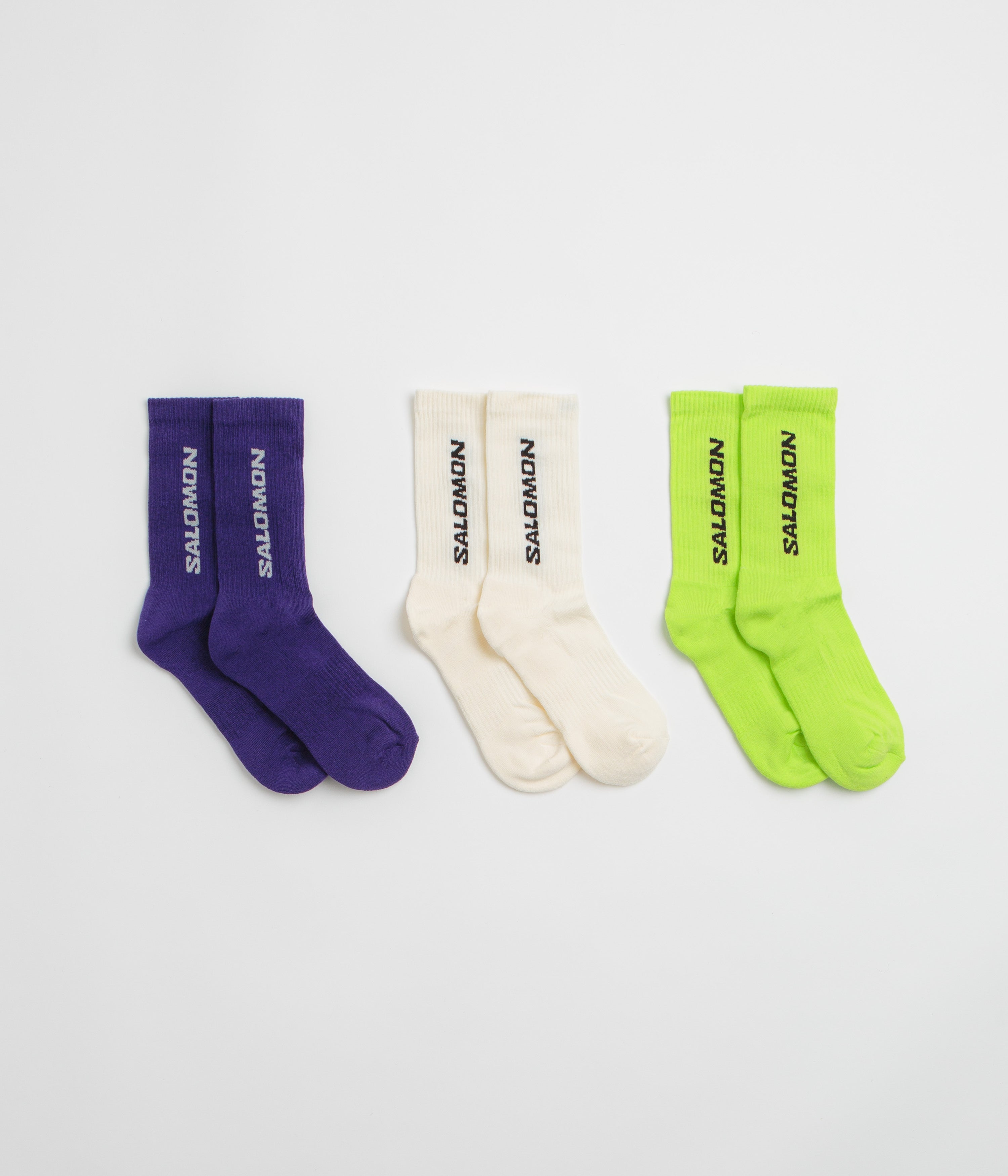 Salomon Everyday Crew Socks (3 Pack) - Vanilla Ice / Acid Lime / Deep Blue